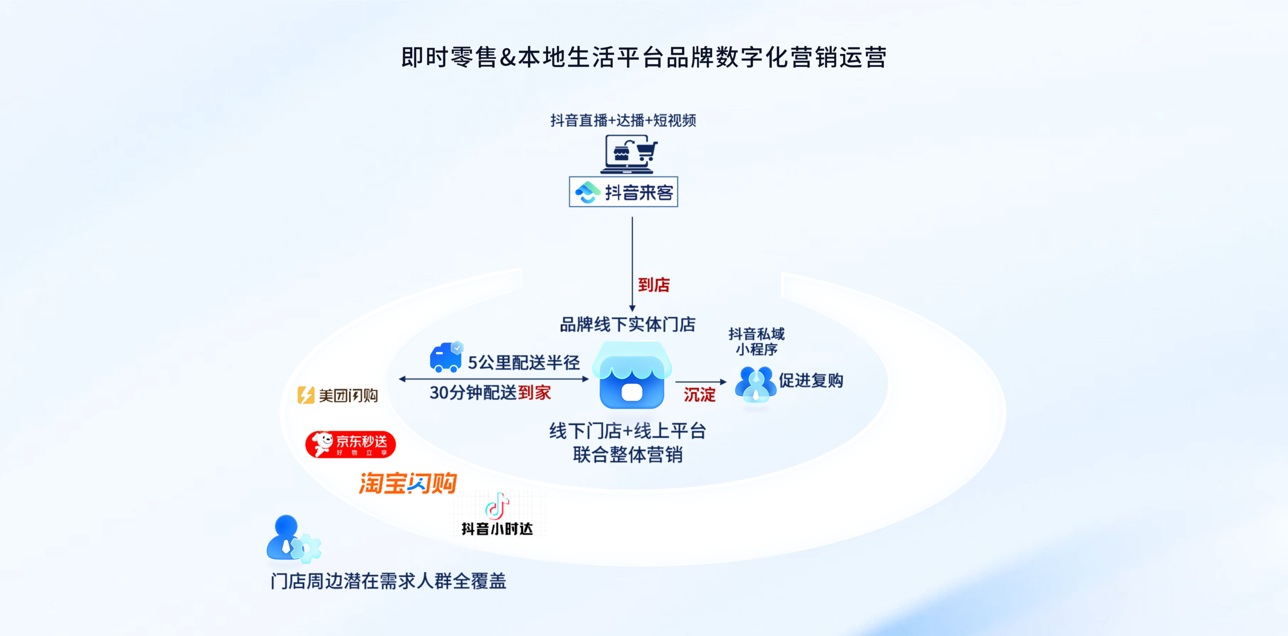 六年来,基于对年轻消费者以及渠道发展进程的深度理解,为客户提供新时代下即时零售&本地生活O2O平台系统化解决方案。通过运营提供更多流量,为品牌企业、淘宝闪购、美团闪购、京东到家、饿了么、抖音本地生活、抖音小时达等品牌商家提供创新、实效的即时零售&本地生活服务。